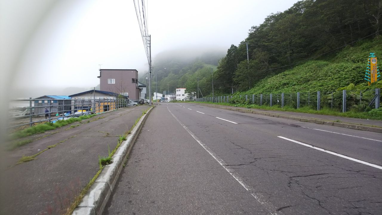 道はウトロ側と違い、高低差がしっかりとある。さらに霧で視界が悪い。