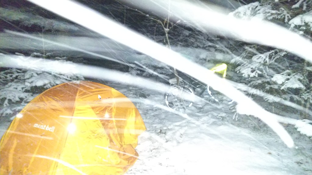 ペットボトル湯タンポを膝に巻き付けて寝袋に入り、頭の中では計画の甘さと自分への過信を反省。